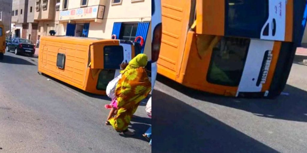 أصيب صباح اليوم الاثنين، طفلين بجروح متفاوتة الخطورة، جرتاء انقلاب حافلة للنقل المدرسي، بحي الوفاق بمدينة العيون.